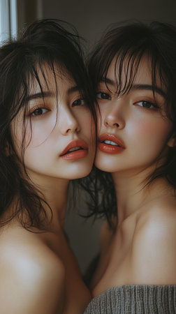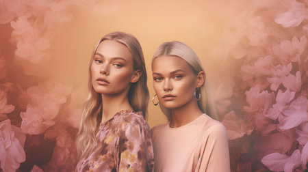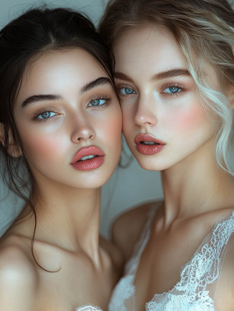 Beauty portrait of two attractive young women with natural make-up. Studio shot.