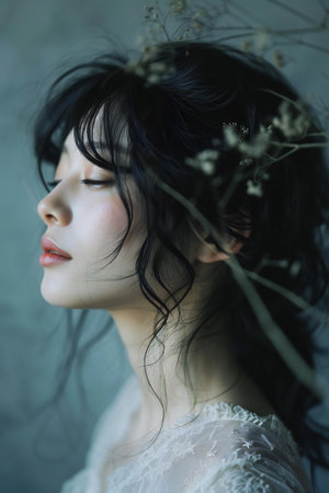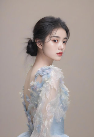Ethereal beauty captured in stunning detail, showcasing a dreamy, magical Asian portrait with an enchanting play of light and shimmer. A true masterpiece of visual allure. Generated A.I.