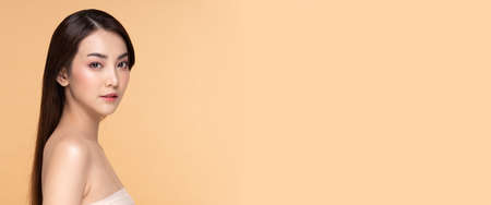 Portrait of beautiful Asian woman face with skin care concept.