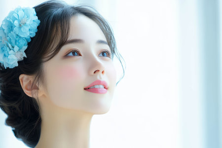 Beauty portrait of a young Japanese woman with copy space for text