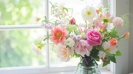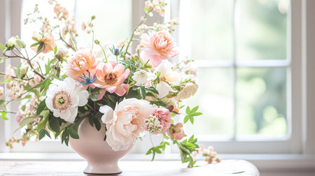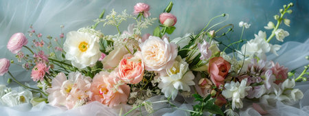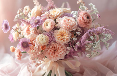 A stunning bouquet of soft pastel flowers creates a sense of tranquility and beauty. Perfect for any decorative or artistic project.