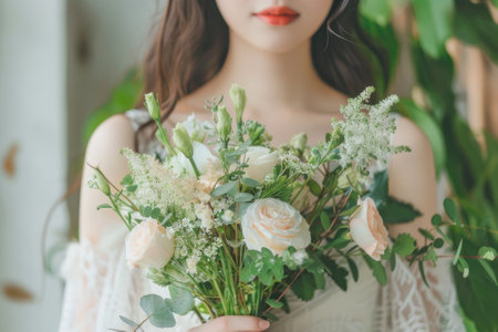 a charming bridal bouquet, exuding elegance and grace, with plenty of open space ideal for text placement or customization