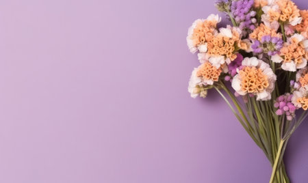 Delicate carnations, exuding elegance and tranquility on purple background. AI Generative