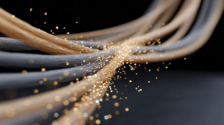 golden fiber optic cable macro close up background high quality big data