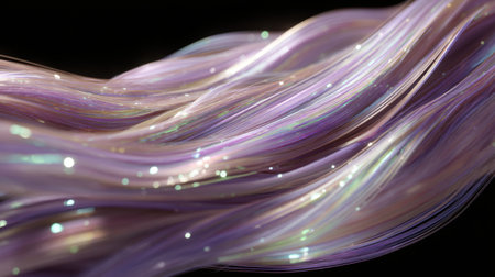Discover the allure of flowing pastel purple hair, shimmering in light against a dark backdrop, creating a captivating visual of elegance and beauty.