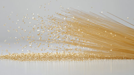 An enchanting arrangement of golden straws and sparkling glitter creates a visually stunning effect that enhances creativity for seasonal events and artistic endeavors.