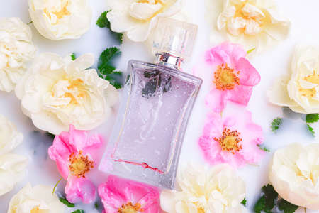 Perfume and perfume bottles And the aroma of flowers