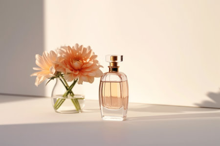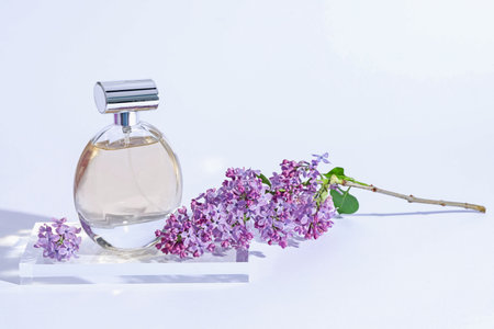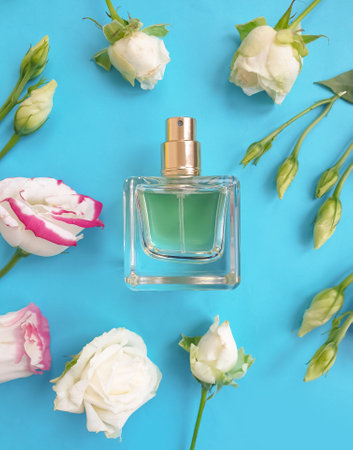Perfume bottle with aromatic floral scent, luxury fragrance for women