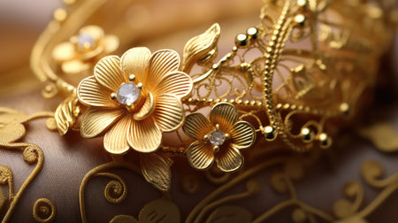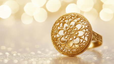 Macro shot displaying the exquisite detail of gold filigree jewelry, perfect for luxury and fine craftsmanship themes.
