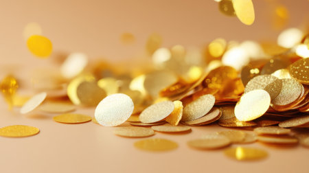 Festive golden confetti creates a delightful atmosphere, perfect for celebrations and parties. This sparkling scene adds a touch of glamour and joy to any event setting.