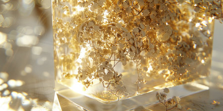 transparent glass vase bursting with an abundance of shimmering gold flakes, creating a luxurious and opulent display.