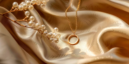 Discover a beautiful arrangement of elegant gold accessories set against a luxurious satin background, perfect for fashion visuals and inspirations.