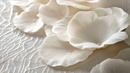 A closeup of delicate white petals resting on a textured surface, embodying tranquility and elegance. This image captures natural beauty and simplicity.
