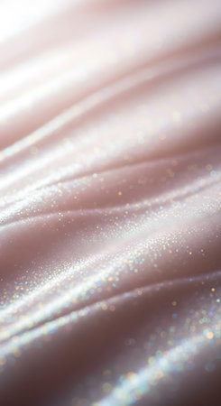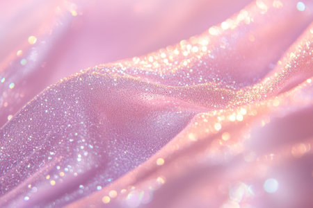 A soft pastel pink and lilac background with an ethereal, iridescent glitter effect that shines under the light.