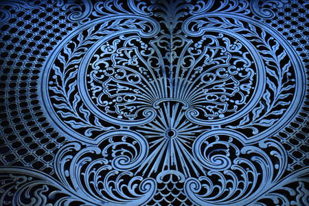 Element of forged metal grille with blurred foreground. Art and craft objects