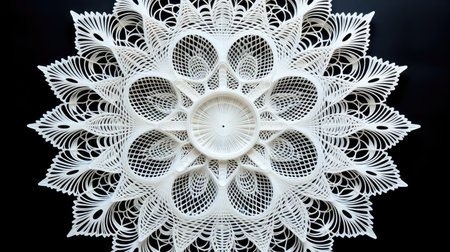 white crochet tablecloth patterns against a black background, created with generative ai