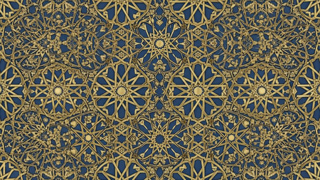 Arabic pattern on blue background. 3d rendering. Computer digital drawing.