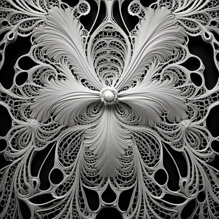 the whirling ornament in black and white is a beautifully decorated piece of art. it showcases the style of fractalpunk with its realistic and intricate details. the ornament has a futuristic victorian vibe, incorporating delicate paper elements and a color palette of light white and silver. this web-based art is a stunning example of creativity and craftsmanship. ai generated