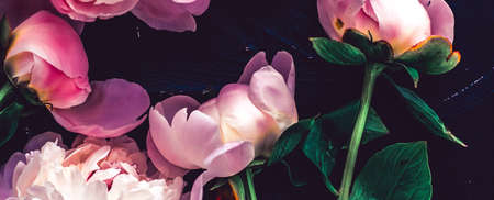 Pink peony flowers as floral art background, botanical flatlay and luxury branding design
