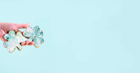 Three gingerbread in the navof of money on an abstract background of different colors. St. Patrick's Day