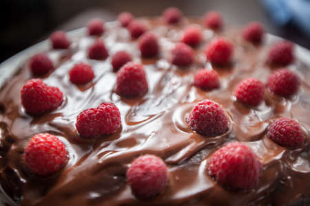 Beautiful fresh sweet cake with berry and chocolate and bokeh illustration