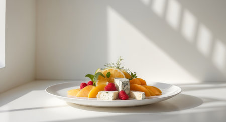 AI Generated. a plate of food with a variety of fruits and cheeses