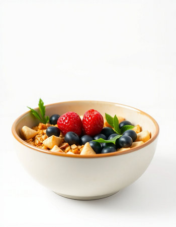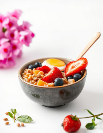Healthy breakfast bowl with muesli, yogurt and fresh berries