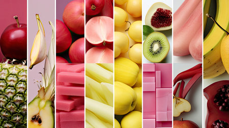 Vibrant Pink and Yellow Collage: Fashion, Fruit, and Minimalism