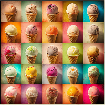 colorful ice cream flavors displayed on a chalkboard, creative menu concept banner for ice cream shop