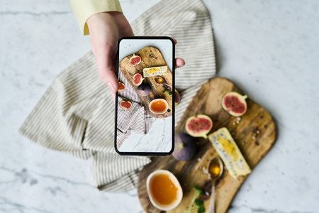 Taking picture of breakfast with smartphone