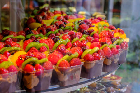 Fruit dessert in the shop window.