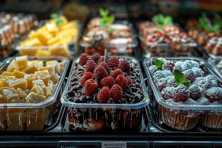 mini tarts with assorted berries in a bakery case, created with generative ai