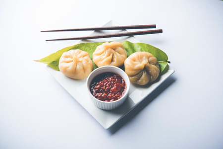 Momo is a type of South Asian dumpling; native to Tibet, Nepal, Bhutan, Sikkim state and Darjeeling district. at Lachen. North Sikkim, India.