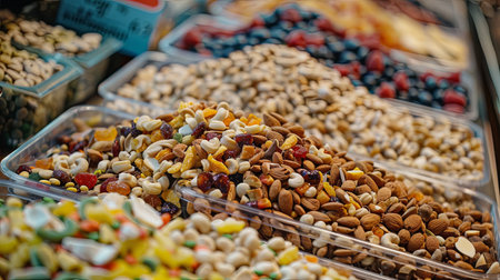 Assortment of nuts and dried fruitset stall in Istanbul, Turkey