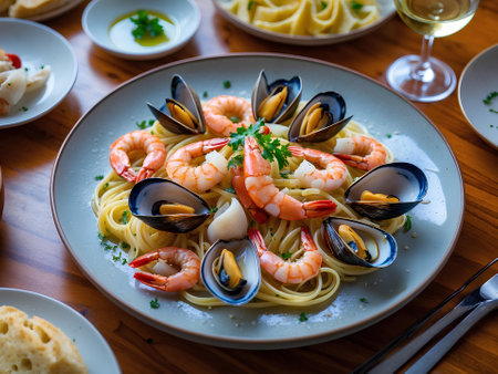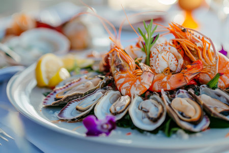 Seafood feast local restaurant food platter indoor setting close-up view culinary delights