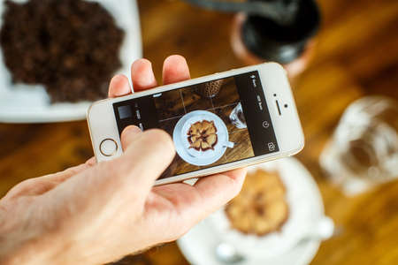 Taking photo of the Cappuccino with mobile phone