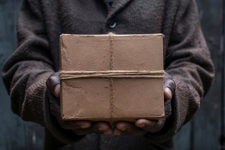 a man hold a delivery parcel on their hands.