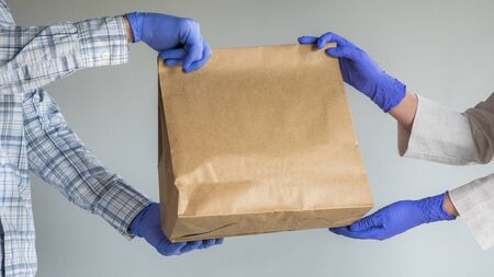 Transfer the bag of food in protective gloves. Food delivery