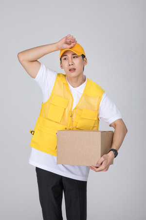 Young mailman delicately transporting a fragile package for safe delivery to its destination