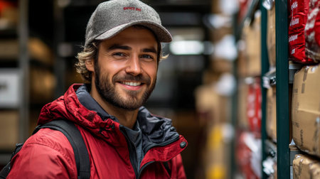 Smiling Warehouse Worker Manages Inventory in a Well Organized Logistics Facility During Working Hours Generative AI