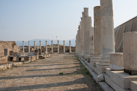 Explore the well-preserved ancient ruins of Laodikeia, featuring majestic columns and remnants of historical structures under clear skies.