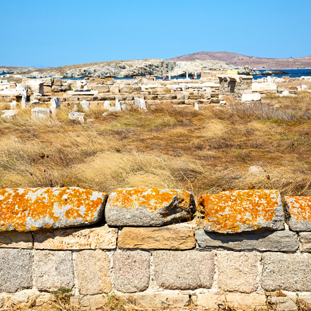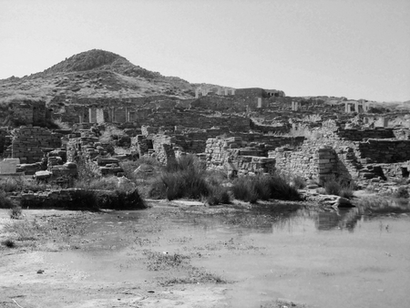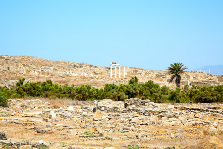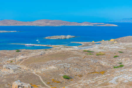 View of Delos island: the most big archaeological site of Cyclades archipelago. Greece.