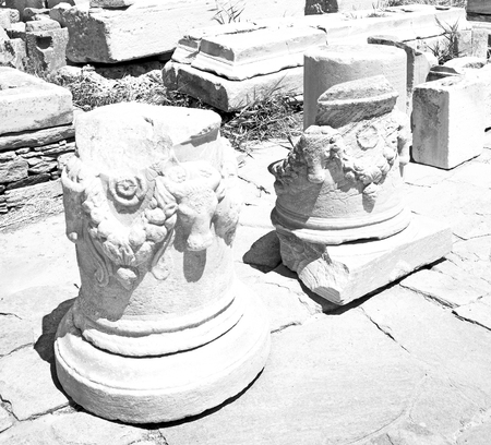 ancient columns in the archeologic site of Delos, near Mykonos in Greece.