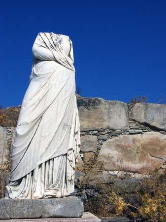 Stone headless statue of women in island Delos near the Mykonos,Greece