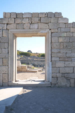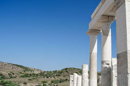 Sangri, Naxos / Greece - August 25, 2014: Temle of Demeter museum and ruins near the village of Sangri, Naxos, Cyclades Islands, Greece