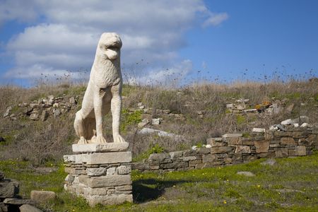 Lion statue from the Terrace of the Lions on the Cyclades island of Delos-Greece