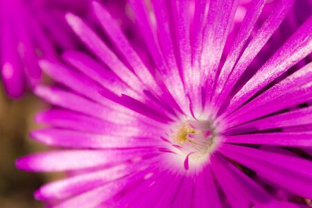 Springtime. Ice plant blossom, bright pink purple color closeup view, sunny day