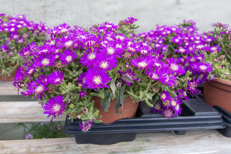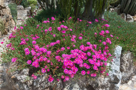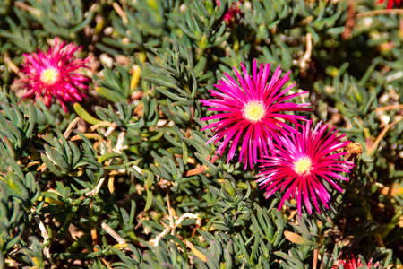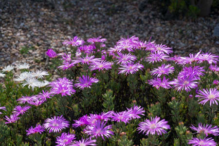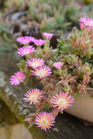 Beautifully blooming flowers of lampranthus in the flower bed.