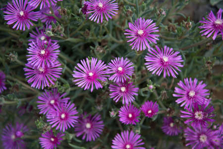 Livingstone daisy or ice plant in garden. Bright purple flowers