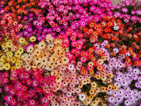 Colorfully dense daisy flowers all over the flower bed